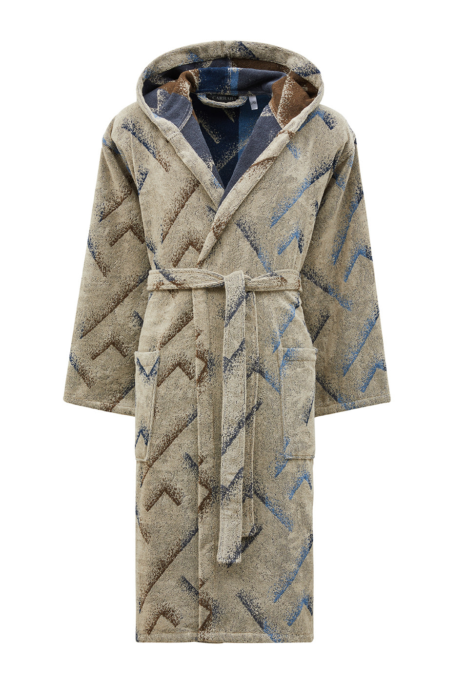 In una cozy routine che si rispetti non può certamente mancare un bagno caldo, meglio se accompagnato da un buon libro e una musica rilassante in sottofondo. Kanzi è un morbidissimo accappatoio con cappuccio realizzato in soffice spugna estremamente idrofila di qualità superiore, secondo la tradizione della maison Carrara, ed è proposto in un elegante color sabbia con tratti sui toni del blu e del marrone.