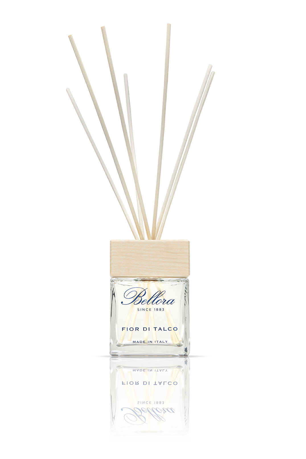 Un’esclusiva profumazione d’ambiente a marchio Bellora 1883: Fior di Talco è una fragranza in grado di evocare atmosfere ricercate ed eclettiche, confezionata in un contenitore in vetro dal design elegante e minimale impreziosito da un ventaglio di bastoncini in legno. Per colpire positivamente, oltre all’olfatto, anche la vista.