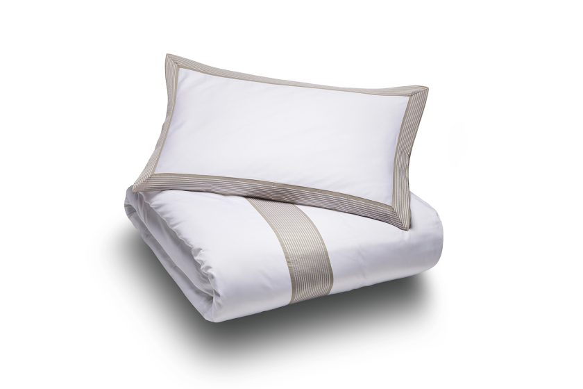 Eleganza minimale e morbido dinamismo delle geometrie: Palazzo Gioioso è un coordinato realizzato in purissimo raso di cotone e disponibile in versione completo letto e completo copripiumino. Il bordo ricamato impreziosice e dona fascino alla tinta unita, in una dimensione di rilassante comfort.