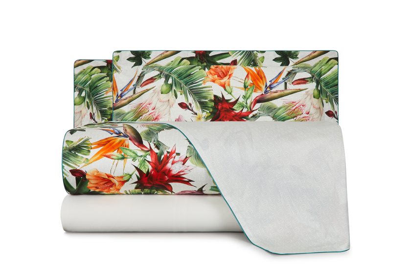 Un’eccentrica giungla illuminata da colori carichi e brillanti, ad alto tasso di seduzione: Jungle è il coordinato in finissimo raso realizzato da Mirabello Carrara per Philipp Plein, e declinato in versione completo letto, completo copripiumino, trapunta, oltre che su accessori in seta come plaid e cuscini.