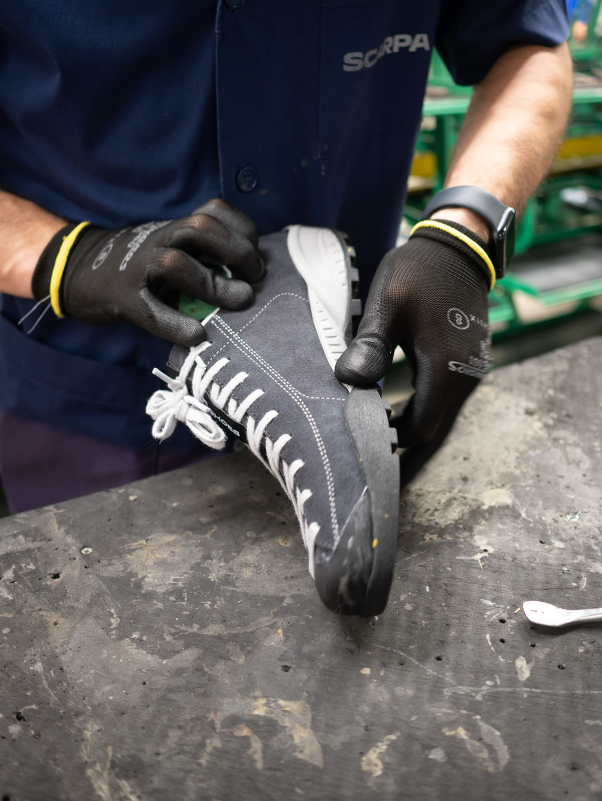 Nel dettaglio, l’intersuola contiene fino al 35% di materiale proveniente da suole macinate e la suola è composta per il 50% da gomma devulcanizzata, ottenuta dagli scarti produttivi di SCARPA.
